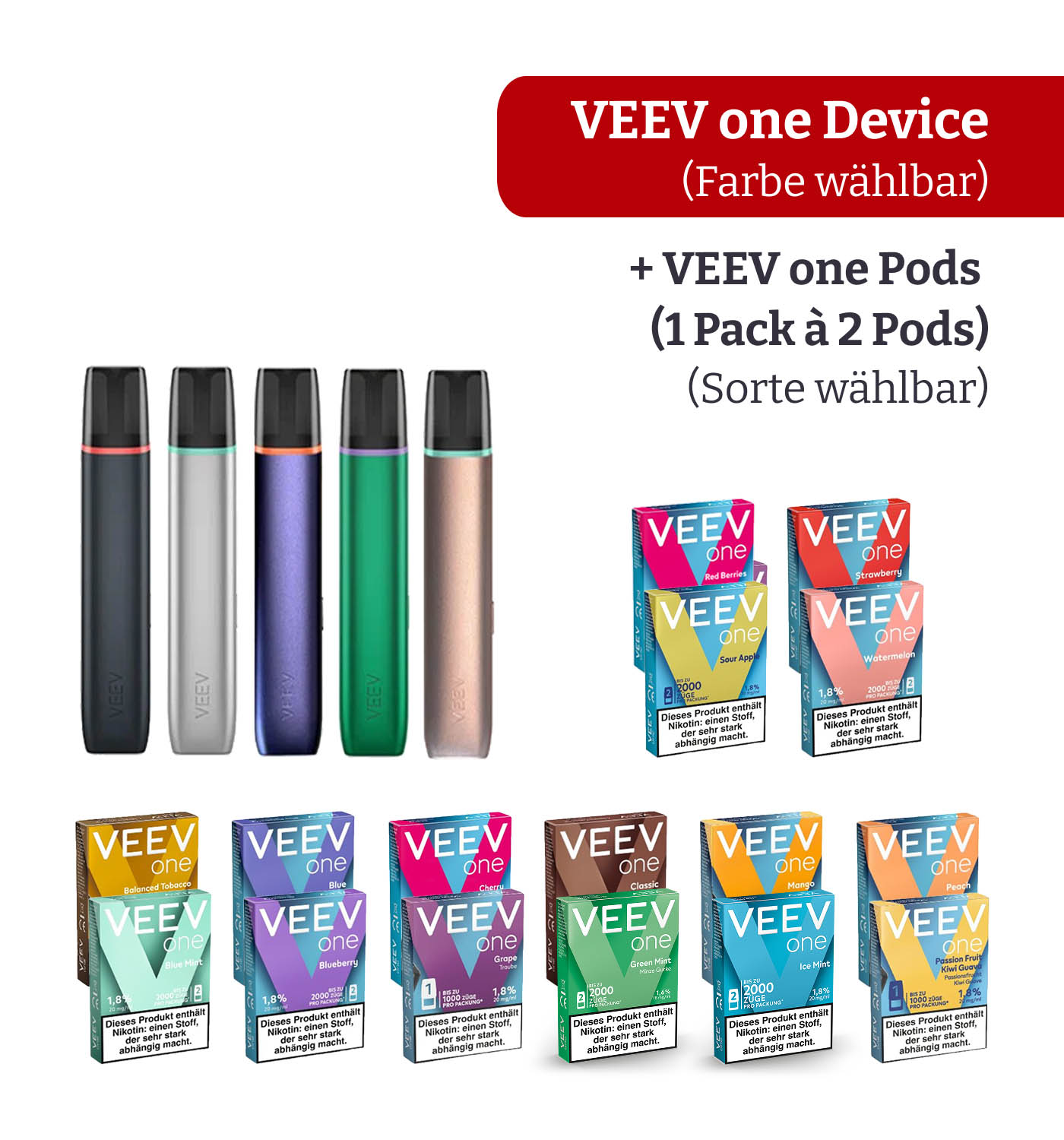 Jetzt die VEEV one im Set von Philip Morris. Dieses Angebot kombiniert das hochwertige Aluminium-Device mit einer Packung passender Liquid-Pods in Ihrer Wunschvariante.