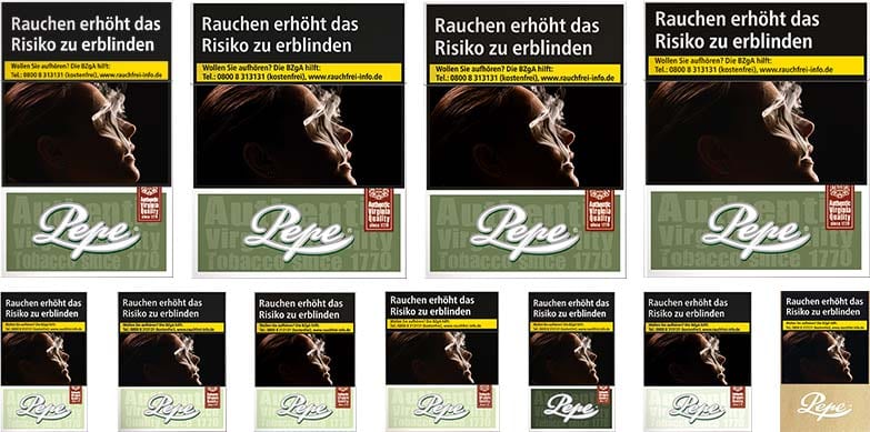 Die Green-Zigarettensorten Pepes sind wie folgt gestaffelt: